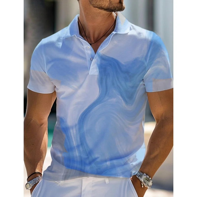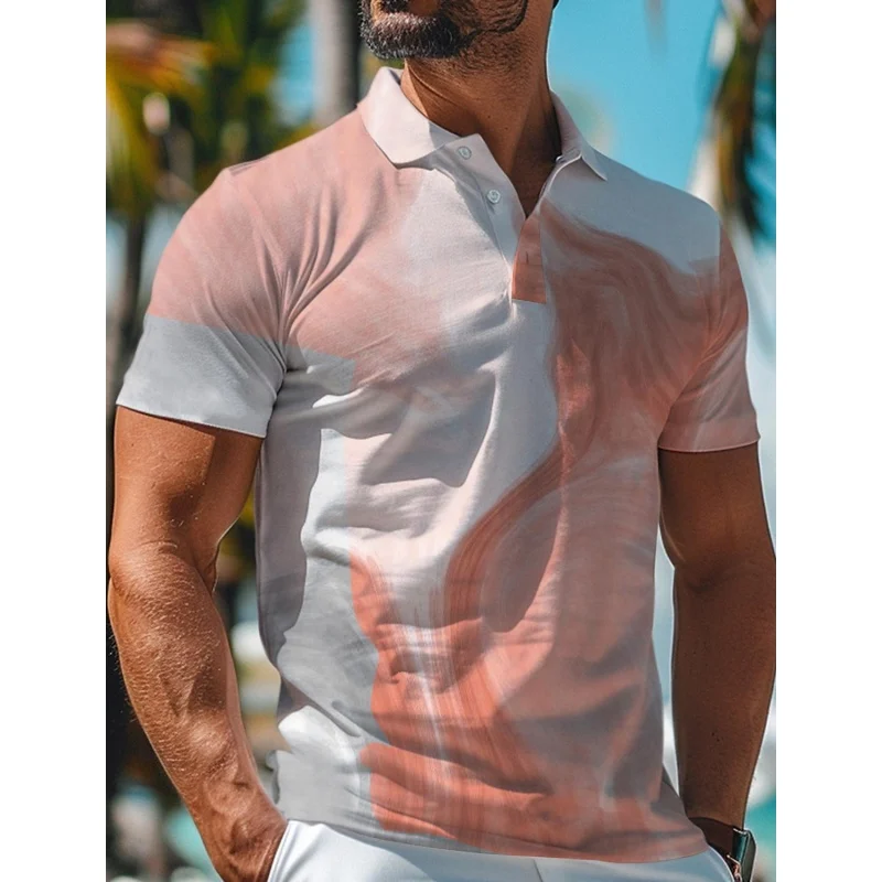 3D Printed Texture Stripe Polo Shirt For Men Colorful Gradient Pattern Men’s Clothes Summer Lapel Tops Loose Short Sleeve Tees