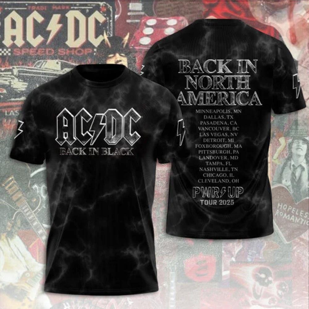 AC DC Back In Black Shirt Back In North America PWR Up Tour 2025 3D T-Shirt