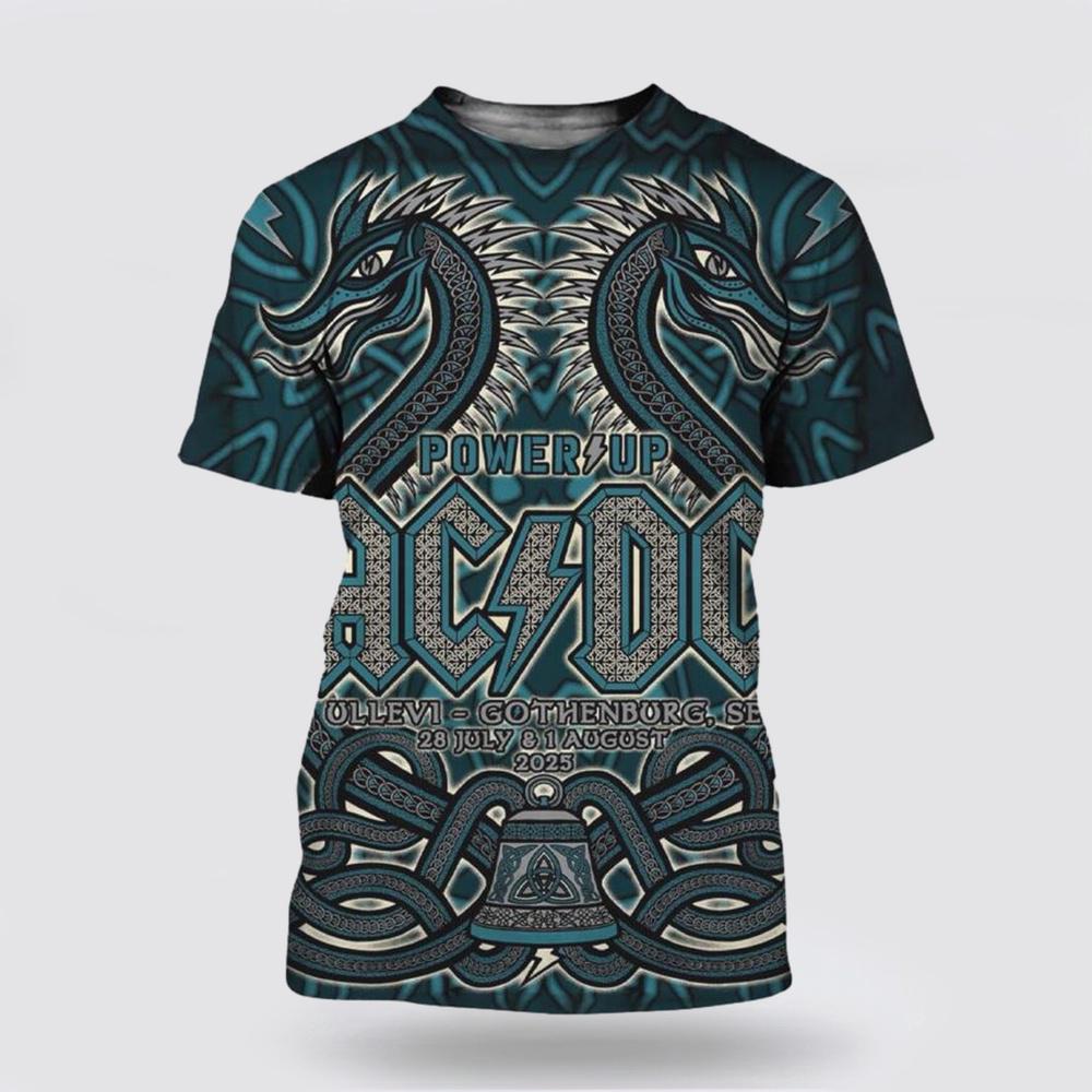 Photos Of ACDC PWR Up Gothenburg Sweden 2025 Event Tour Poster At Ullevi On July 28 And August 1 2025 3D T-Shirt