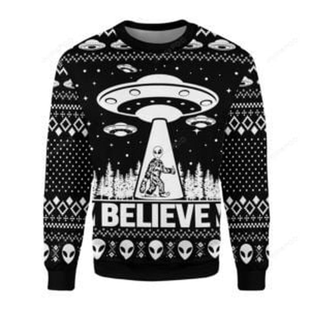 Product Details Alien UFO Believe Bigfoot Ugly Christmas Sweater