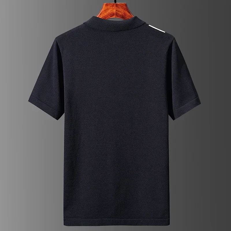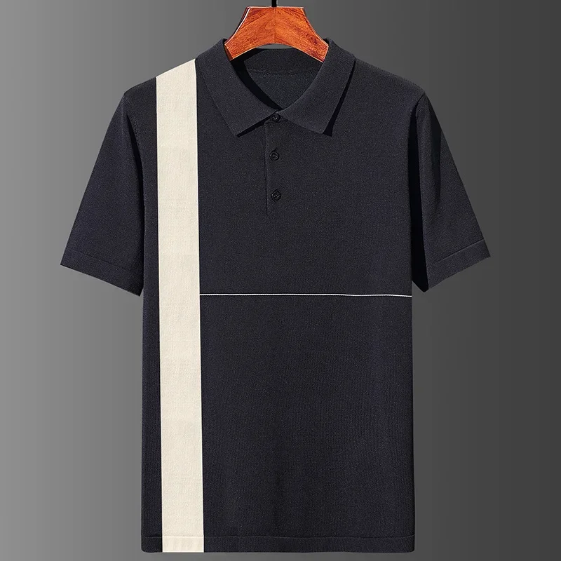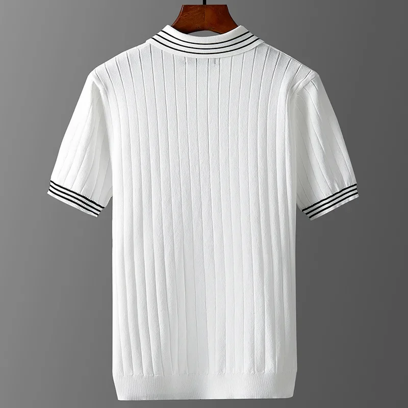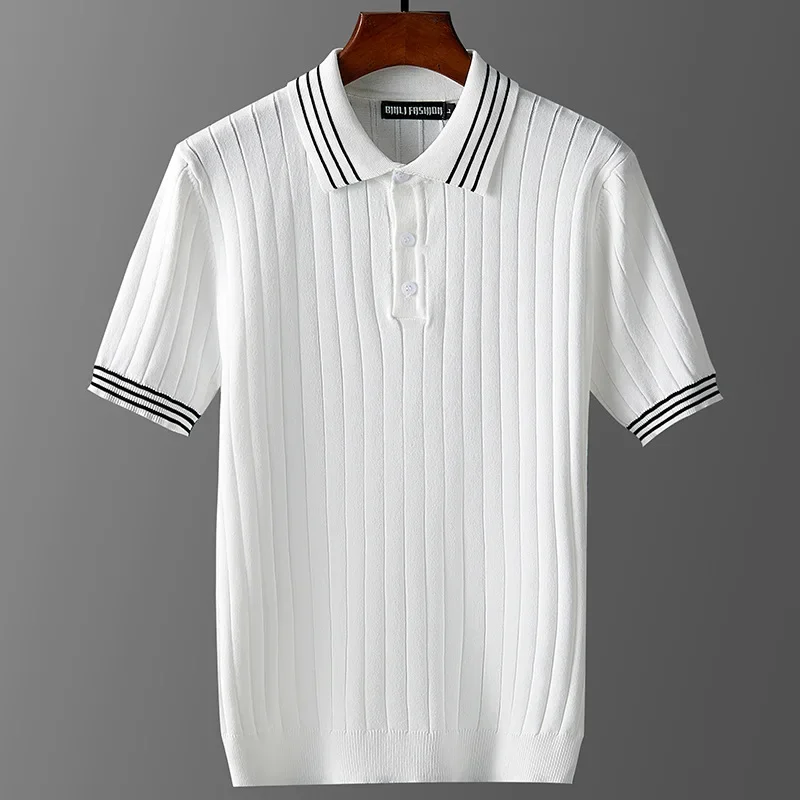 Knitted Striped Oversized 7XL Polo Shirts For Men Short Sleeved Summer High Quality 100%Viscose Stretch Casual Camisas De Hombre