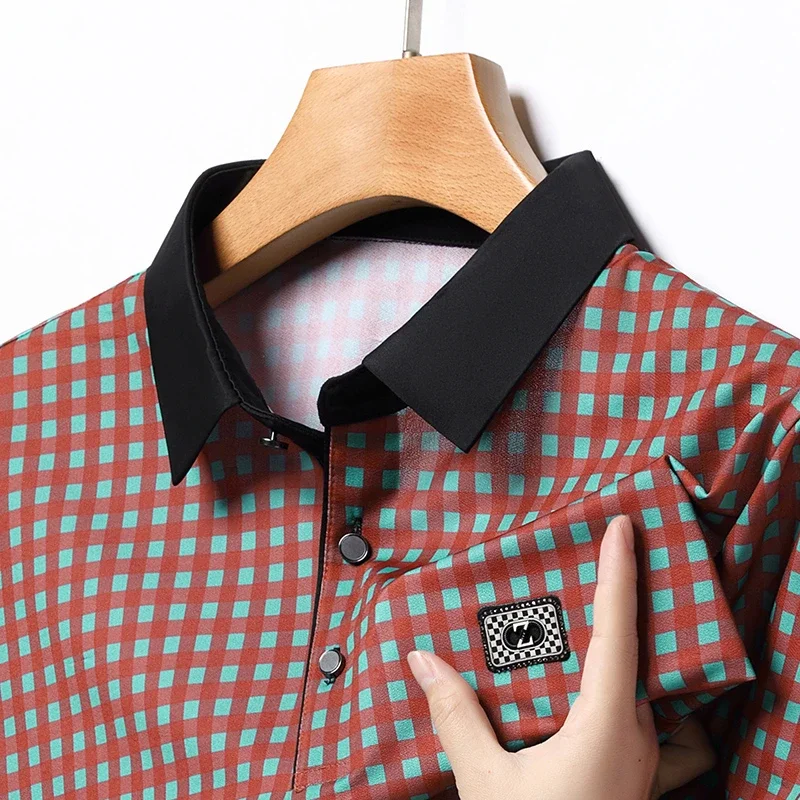 Featuring a classic plaid pattern and striped design, this polo shirt offers a casual yet stylish vibe for any casual occasion.