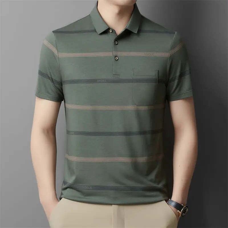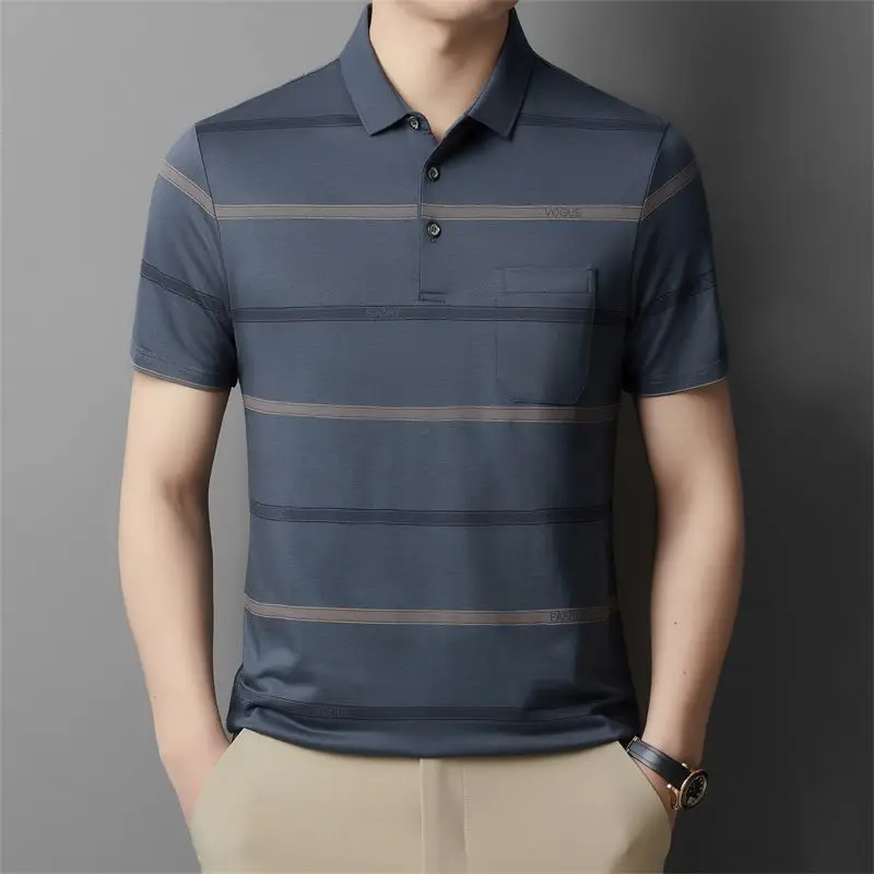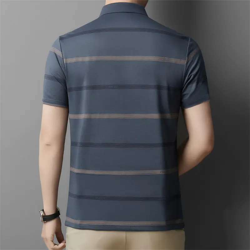 Printed casual short-sleeved T-shirt middle-aged lapel striped business POLO men’s top t-shirt