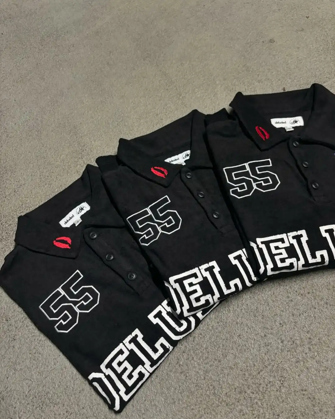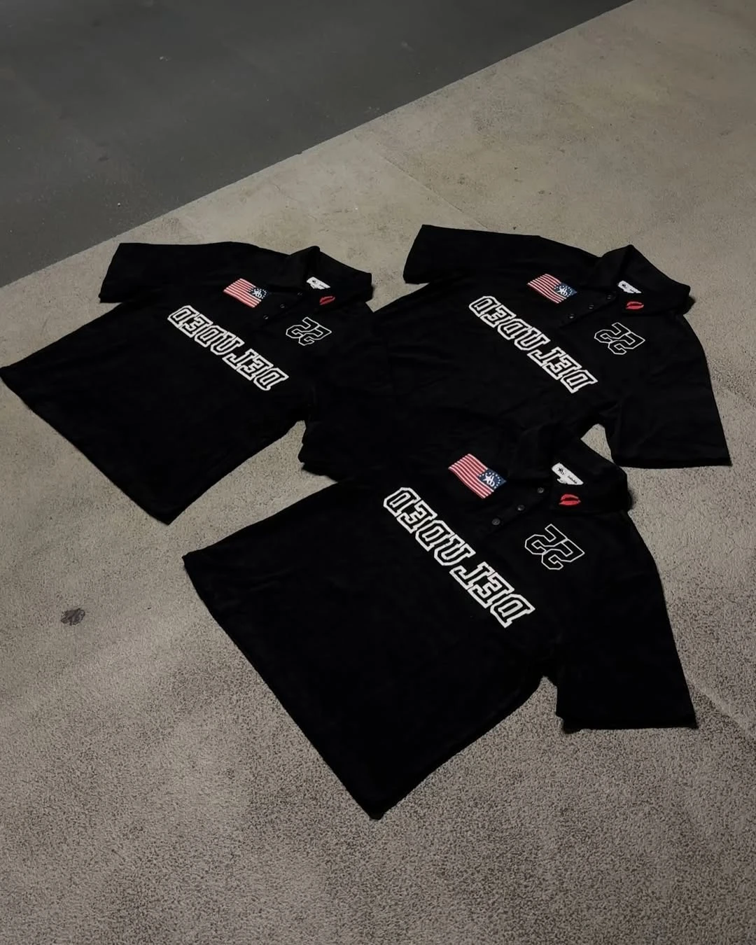 Streetwear Men Polo Shirt Graphic Black T Shirt with Harajuku Trend Clothes Number USA Flag Embroidered Casual Oversized Fashion