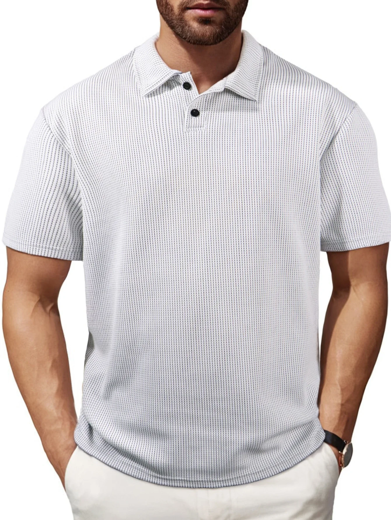 Summer men’s casual polo shirt striped lapel short sleeved T-shirt solid color short sleeved T-shirt sports casual clothing
